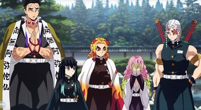 鬼灭之刃 最终话 鬼杀队九柱登场 其中有八位都是转生到现代 鬼杀队 炭治郎 岩柱 炎柱 恋柱 鬼灭之刃 九柱 蛇柱 霞柱 音柱